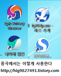 가장 많이 사용하는 것은 Epic Privacy Browser 입니다. 웹브라우저 자체내에 프록시가 내장되어져 있어서 중국에서 막힌 사이트를 보려고 할 때 사용합니다. 사실은 중국에서는 한국인인 제가 보려고 하는 모든 사이트는 막혔다고 봐야하기에 이 브라우저는 참으로 꼭 필요합니다.